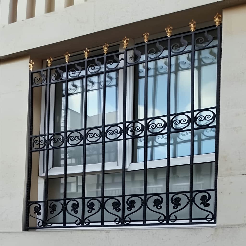 حفاظ پنجره مدل سلطنتی نیل, شاهکاری در صنعت حفاظ سازی است که زیبایی معماری کلاسیک را با بالاترین سطح امنیت ترکیب می کند. این مدل لوکس و هنری, با الهام از نقش های رومی و تزئینات فرفورژه کلاسیک, نمای ساختمان شما را به یک اثر هنری بی همتا تبدیل می کند. ساختار اصلی آن از پروفیل عمودی 20×20 میلی متر با چیدمان کاملاً متقارن است تا مقاومت و پایداری بالایی در برابر فشار و ضربه داشته باشد. سه ردیف المان فرفورژه مارپیچ در قسمت بالا, میانه و پایین حفاظ, جلوه ای مجلل و پرجزئیات خلق می کند که به هر فضای خاص, شکوه و اصالت می بخشد. سرنیزه های طلایی آبکاری شده که در بالای مدل نصب می شود, نه تنها نقش بازدارنده و امنیتی دارند, بلکه حس سلطنت و جلال را به وضوح به رخ می کشند.